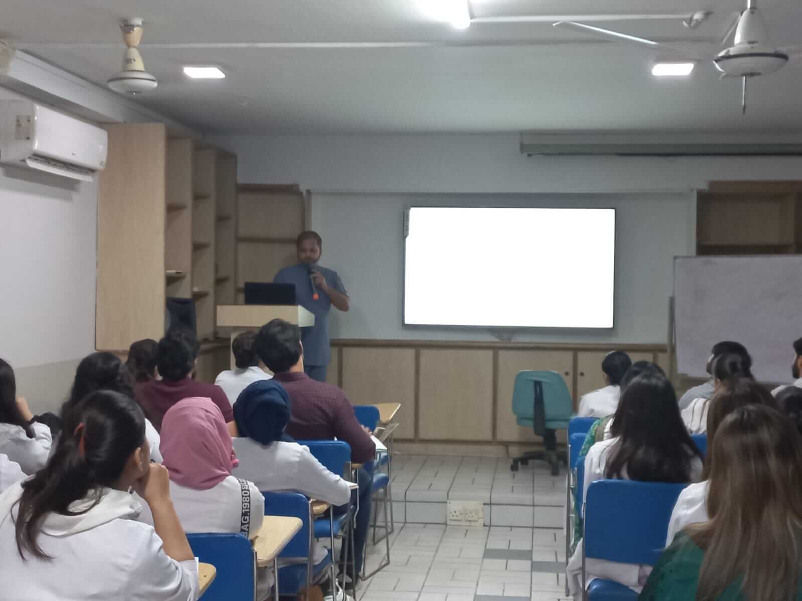 Altamash Institute of Dental Medicine proudly conducted an engaging “Facebow Transfer” workshop for BDS students, designed to bridge theoretical knowledge with practical prosthodontic skills. The workshop was expertly facilitated by Prof. Dr. Naseer Ahmed, Dr. Shuja Adil, and Dr. Huda Adil, and commenced with an insightful lecture explaining the fundamental importance of accurate facebow transfer in achieving precise maxillomandibular relationships. Following the lecture, participants witnessed a comprehensive live demonstration of the facebow transfer procedure—from patient recording to articulator mounting—providing them with a clear understanding of its clinical application. Under the guidance of the facilitators, students also gained valuable hands-on experience, enhancing their confidence and competence in prosthodontic techniques. The session reflected the institute’s ongoing commitment to fostering clinical excellence, innovation, and skill-based education among its future dental professionals.