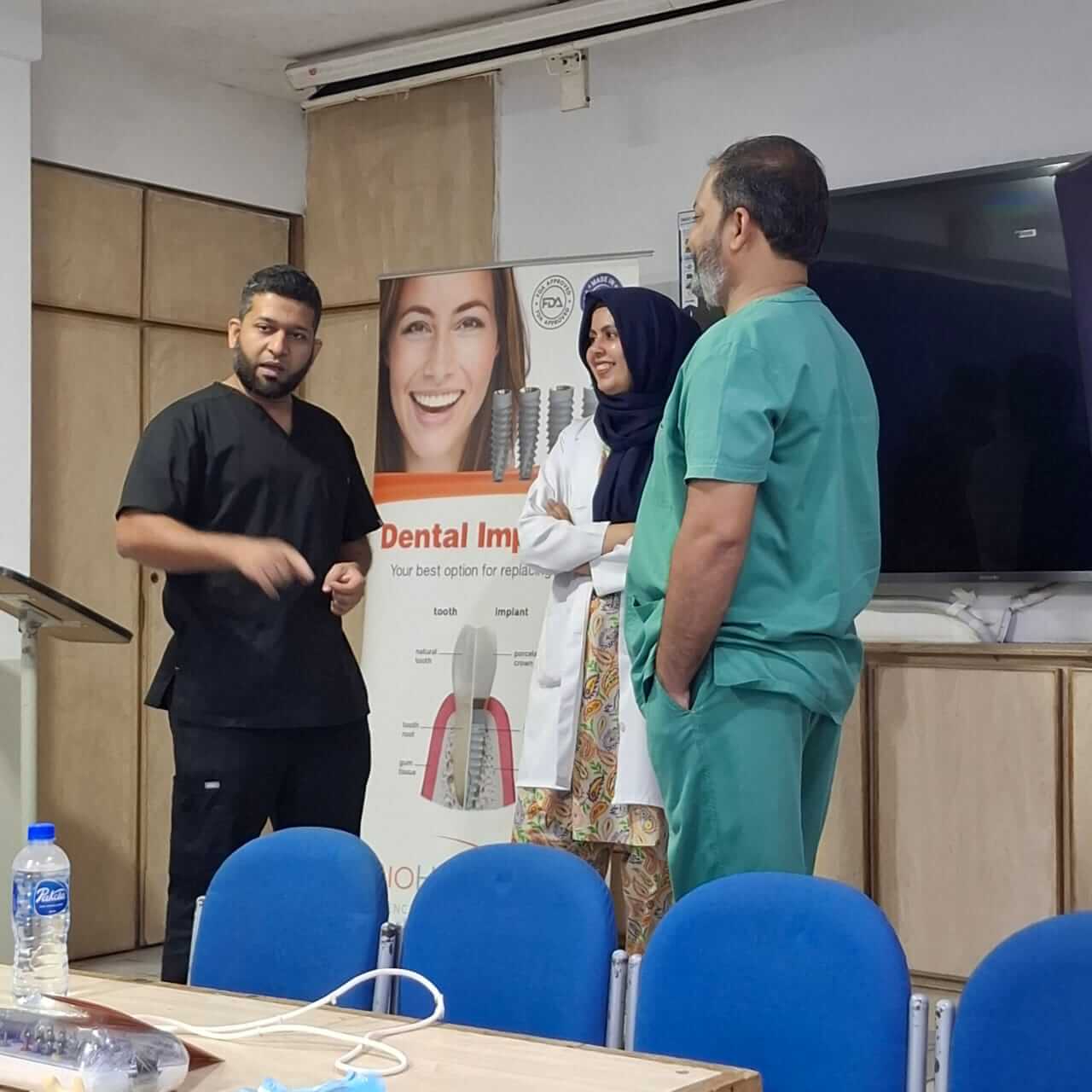 The Department of Prosthodontics, Altamash Institute of Dental Medicine, conducted a hands-on workshop on “Precision in Implant Placement” in collaboration with IZEN Implant Dental Implant. The session was facilitated by Prof. Dr. Naseer Ahmed (HOD Prosthodontics), Dr. Shujah Adil (Assistant Professor), Dr. Tooba Shabbir (Resident), and Dr. Aiman Yaseen (Resident). The workshop featured demonstrations of implant drills, size selection, and hands-on implant placement on dummy models. A live camera setup was arranged to project the demonstration on screen, allowing participants to clearly follow every step of the procedure. The session was attended not only by BDS students but also by postgraduate trainees and house officers from different dental colleges of Karachi, making it a truly collaborative and interactive learning experience.
